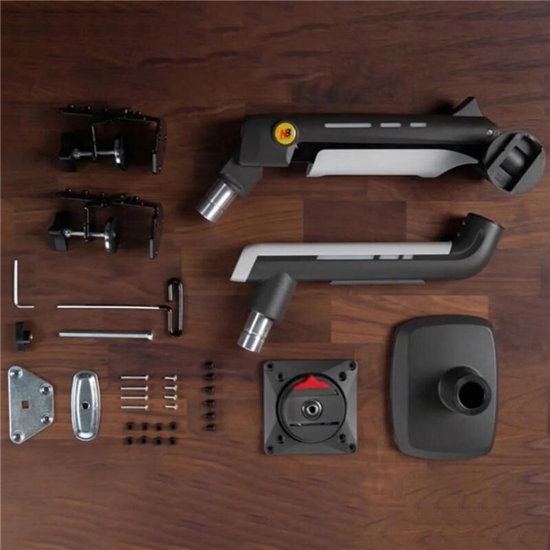 ■ Model: A5 ■ Weight Capacity: 2-18 kg ■ Compatible Screen Size: 27-50 inch ■ Tilt Range: +/-50 degree ■ Height Adjustment: 250mm ■ Rotation: 360 degree ■ Swivel Range: +/-90 degree ■ VESA Compatibility: 75x75mm, 100x100mm ■ Material: Aluminum alloy, cold-rolled steel, plastic ■ Mounting Options: Desk clamp and grommet mounting