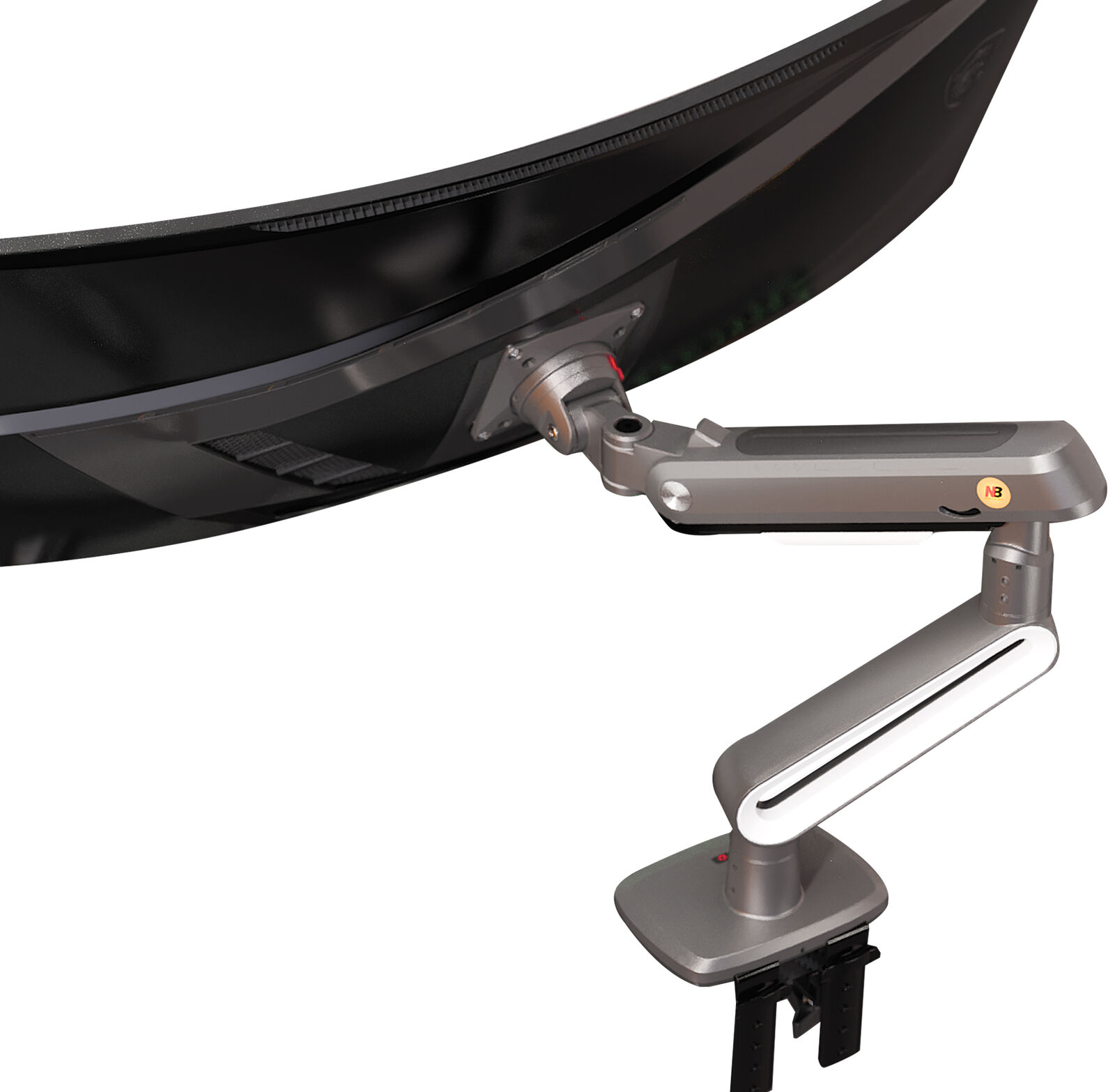 Built with a heavy-duty gas spring mechanism and finished in a matte charcoal coating, the NB-A6 combines industrial strength with a premium aesthetic. The arm offers full articulation—including tilt, swivel, rotation, height and reach—while built-in cable management ensures a tidy workspace.