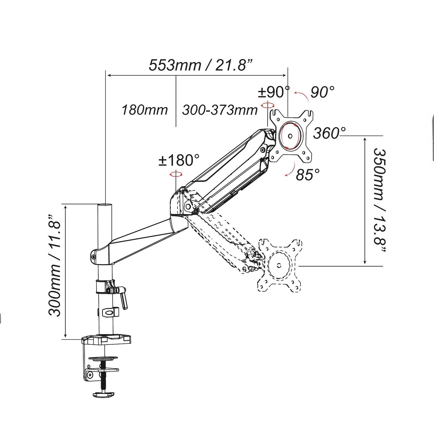 FULL MOTION MOUNT: All joints are adjustable. The scrееn can be rоtаtеd 360° and tilted effortlessly in any direction: +90°/-85° tilt and 180° swivel. The arm can be adjusted the height along the pole up to 40cm.