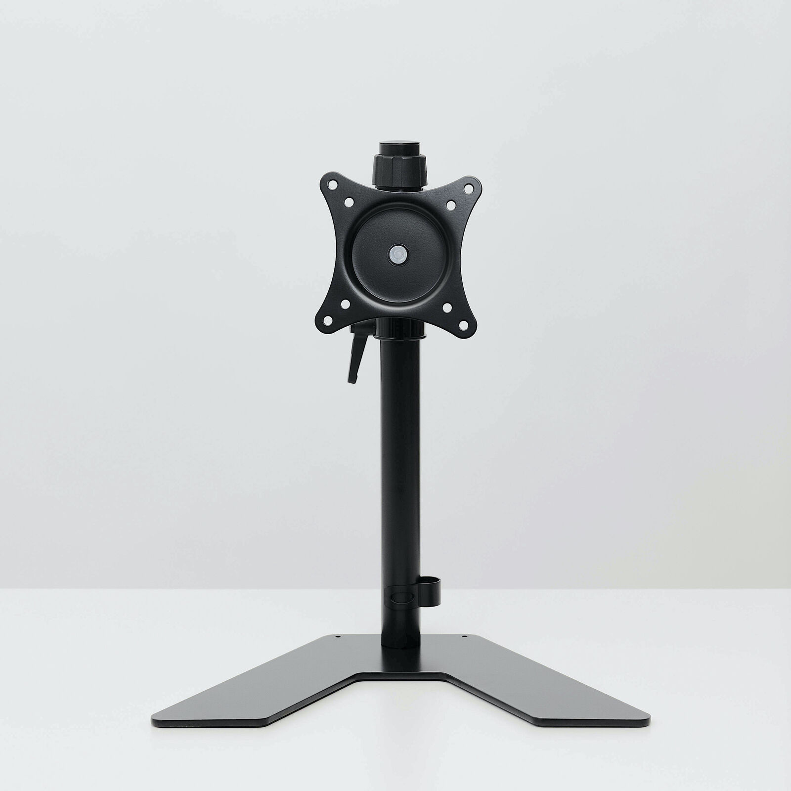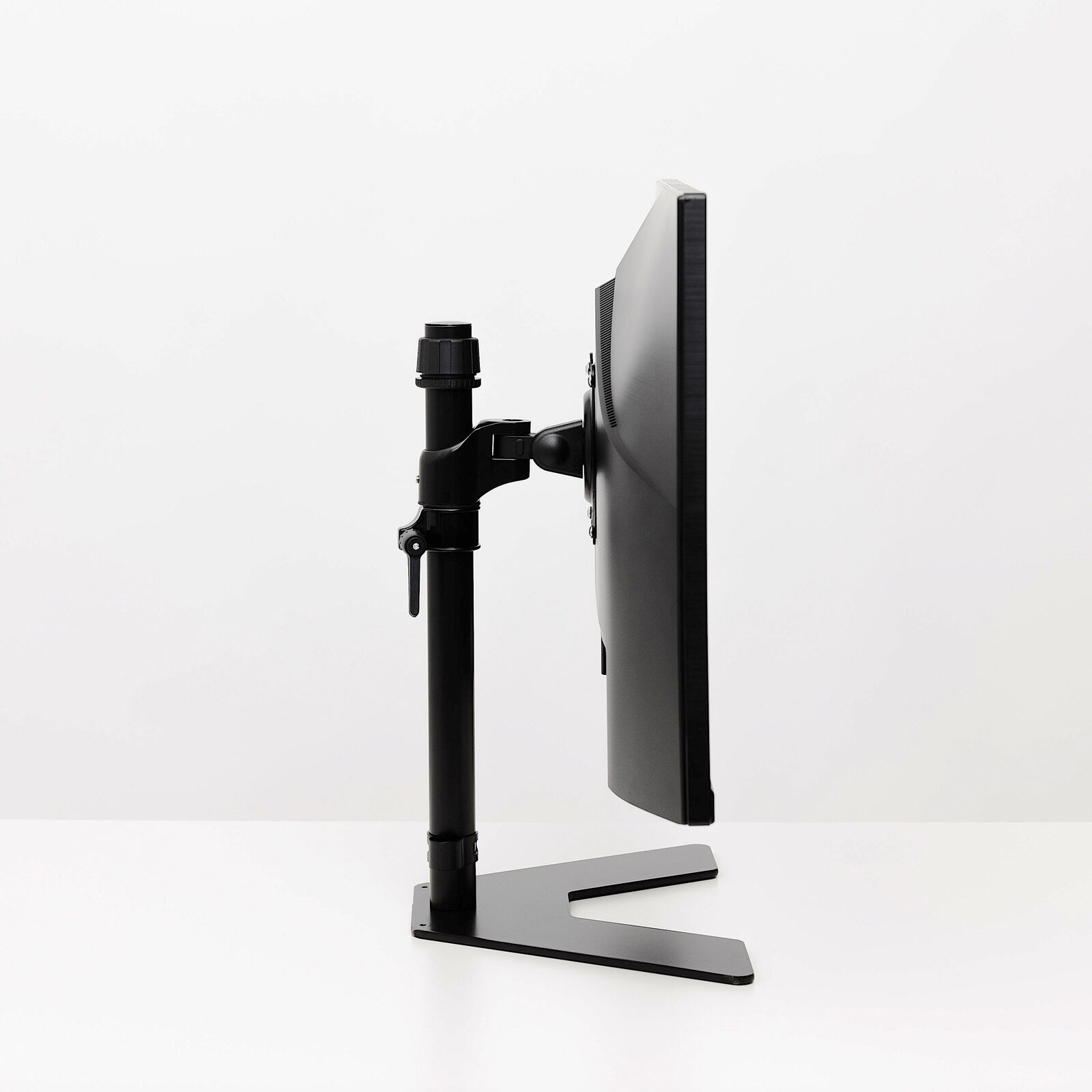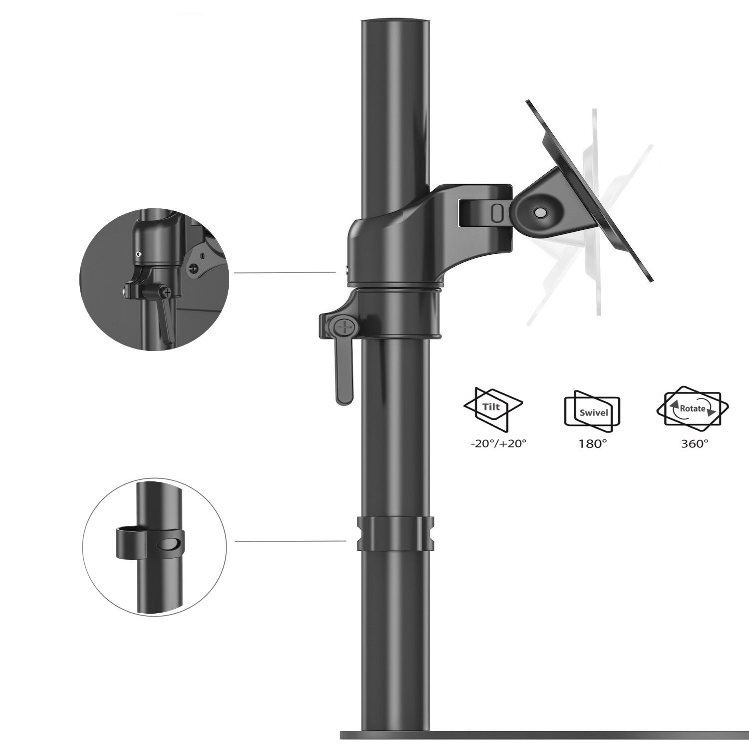 FULLY ARTICULATION - Adjustable arm offers +20° to -20° tilt, 180° swivel, 360° rotation, and height adjustment up to 40 cm along the centre pole. Monitor can be placed in portrait or landscape orientation.