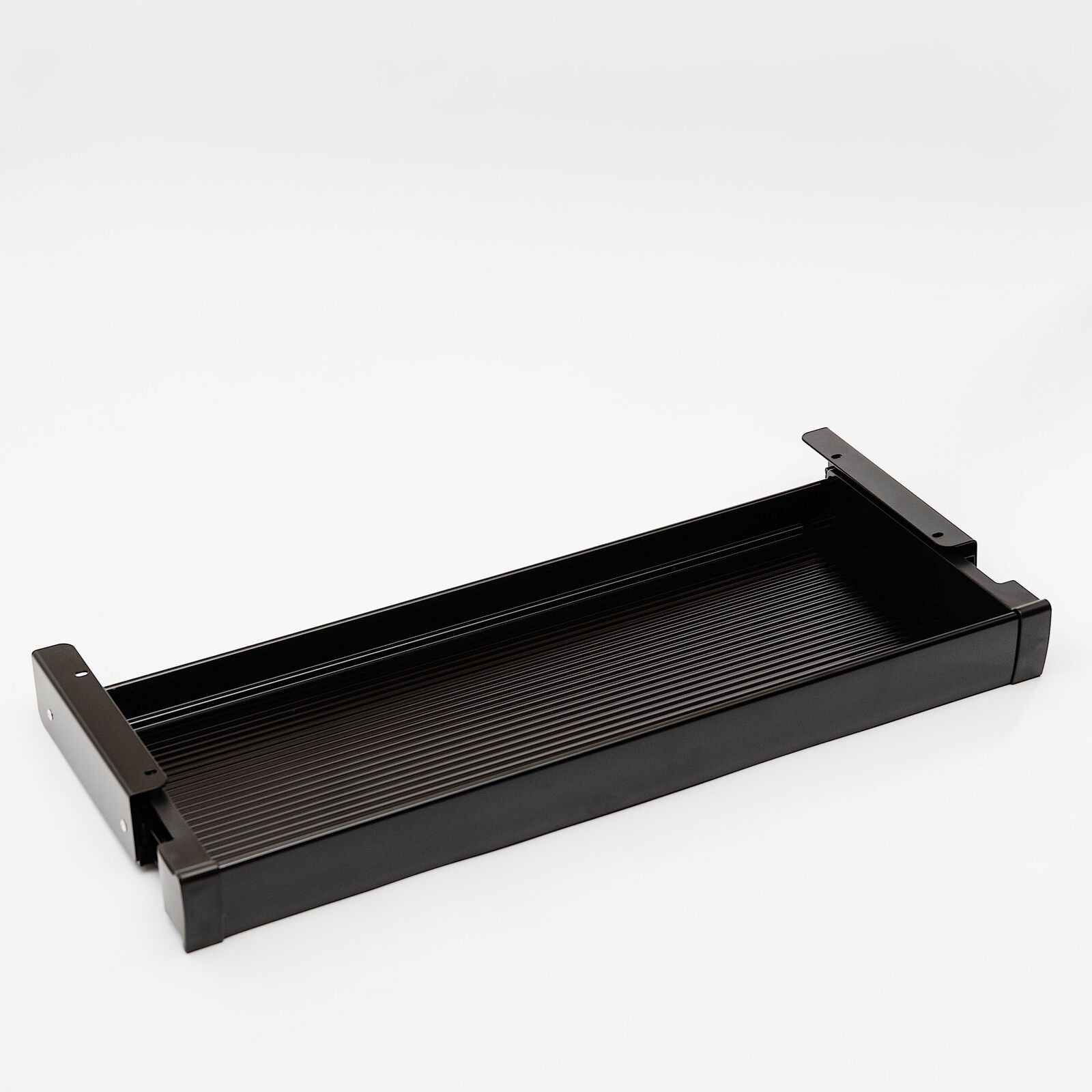 Add more storage to your desk with this sliding drawer. The interior compartment is large enough to hold office supplies, papers, tablets, and more, so you can keep the clutter off your desktop and out of sight. With a width of 17.7 inches and a smooth black or white finish, this under desk sliding drawer is sure to make a difference in your office workspace.