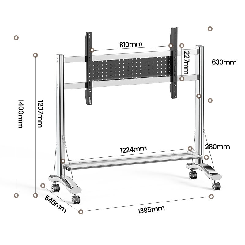 Specs Screen size :60-110, vesa:100*100~1200*600mm weight capacity :80kg Stand base dimention: 550mmx1380mm Stand height:1200mm to the top of vesa hook