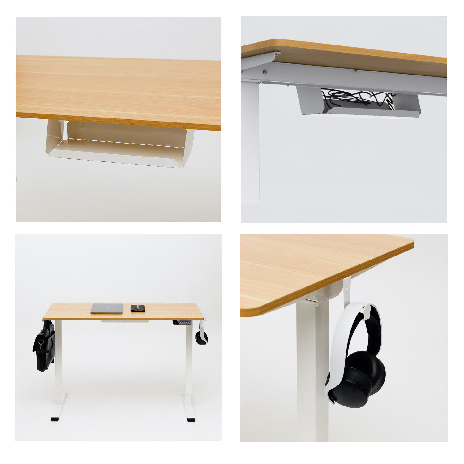 Avoid messy hanging wires or messy desktop. This desk cable management tray has lots of space for cables. Hooks on both side of desk provide extra space for ear phone and handbag.