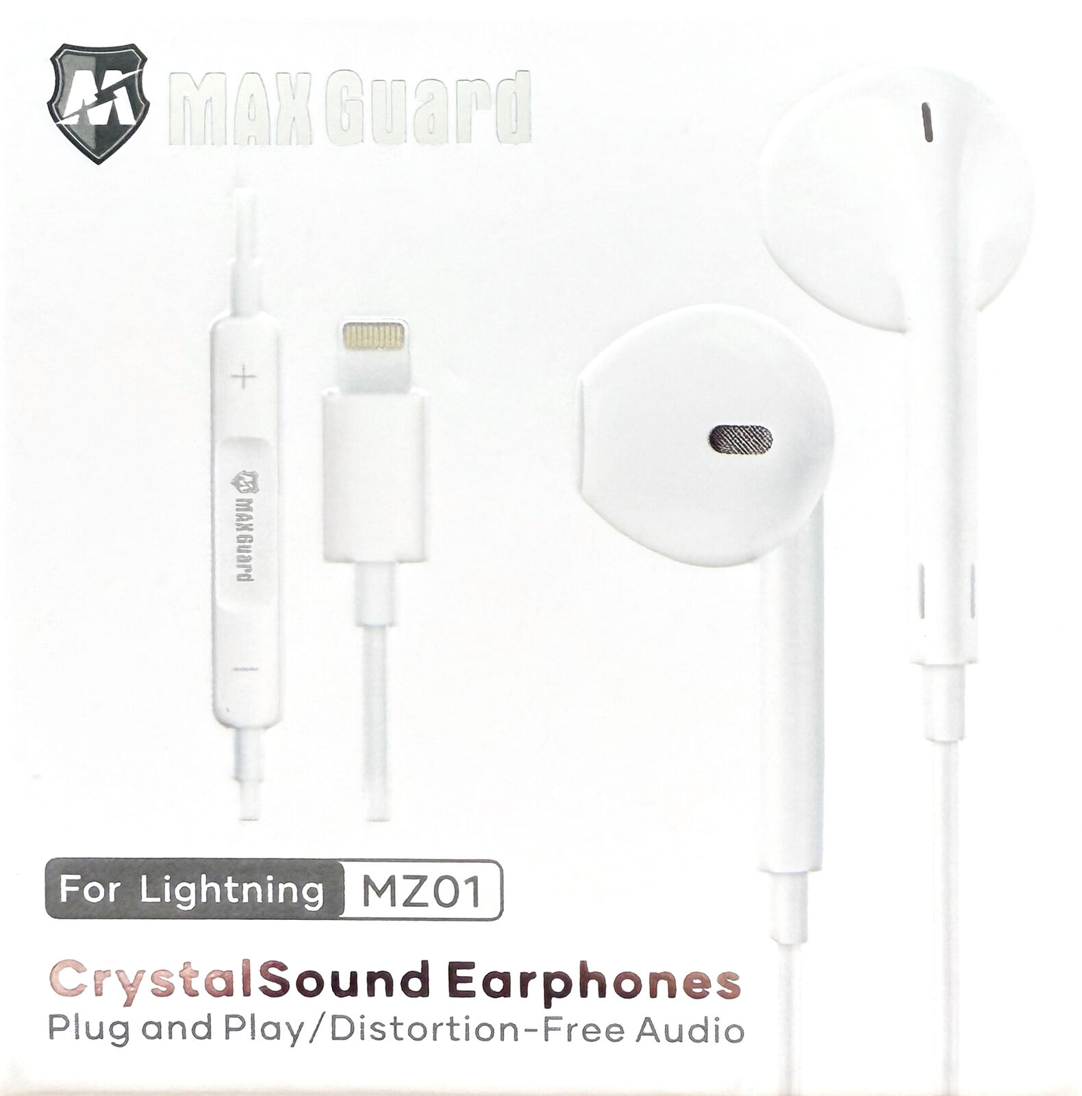 Experience superior sound quality with the MAXGuard MZ01 CrystalSound Earphones, designed for Lightning devices. These earphones offer a plug-and-play experience with distortion-free audio, ensuring every note is crisp and clear.