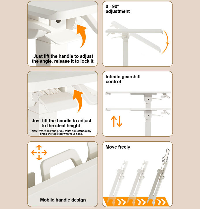 EASY AND QUICK TRANSITION The gas spring system allows for smooth and stable height adjustments of the workstation. Go from sitting to standing in one easy motion. Just squeeze both side handles up or down, release the handles to lock in your desired height.