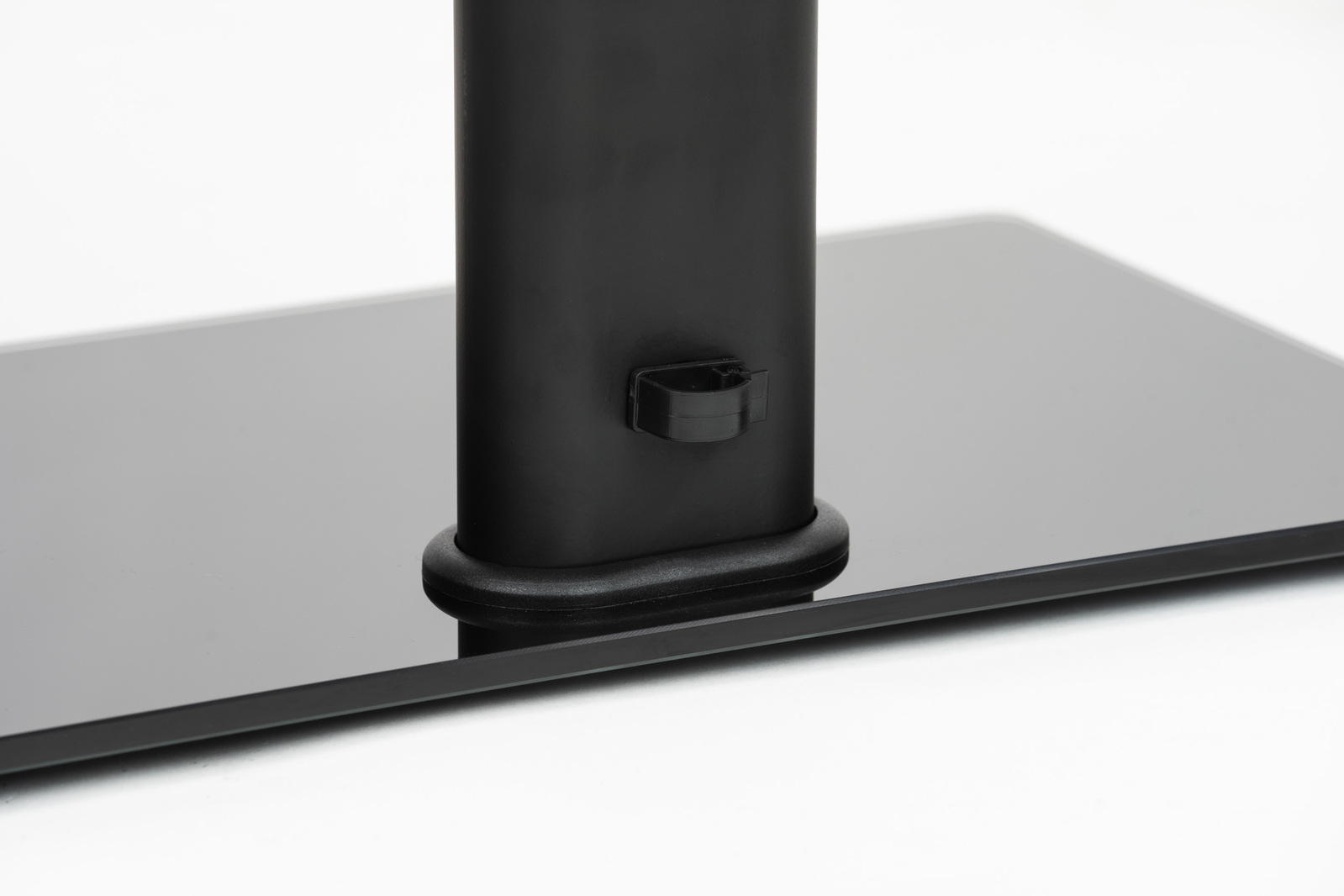 An attractive tempered glass base with rubber stand-offs allows the unit to be placed on your furniture without the risk of scratches and supports easy pivoting of the screen. Clever screen brackets incorporate multiple notches for height adjustment of the screen and universal fitment for a variety of VESA patterns up to 400 x 400mm.