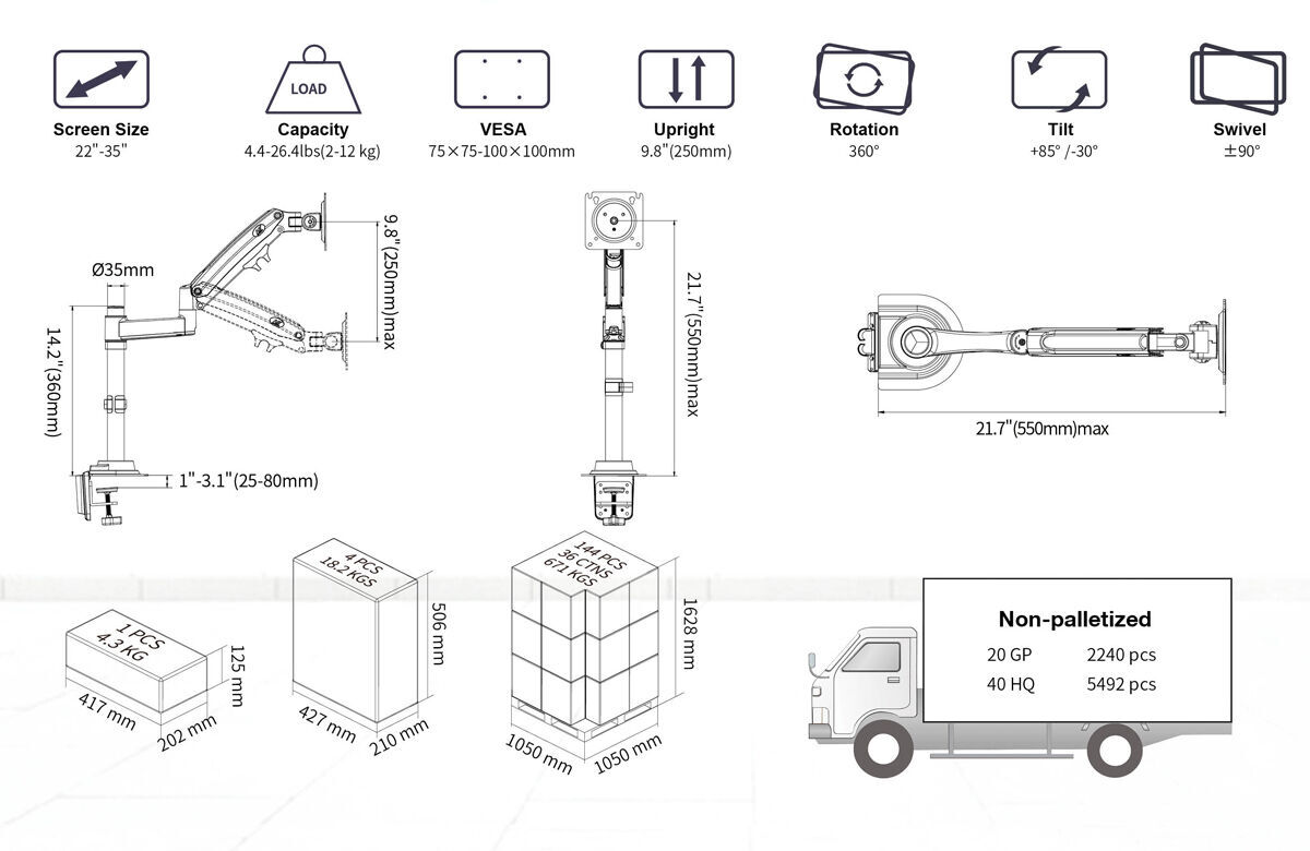North Bayou's NEW Series of Desktop Monitor Mount with Gas Strut arm and Pole Mount.