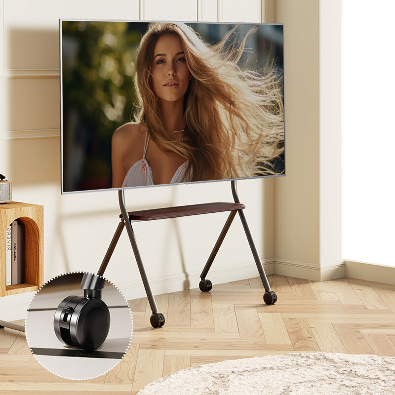 ORIENTED CLASSIC - Art TV Stand with Wheels White A stylish and mobile TV stand designed for both nostalgia and modern convenience. Features a sturdy tripod structure with 360° silent swivel wheels, allowing easy movement and flexible viewing anywhere in your home.