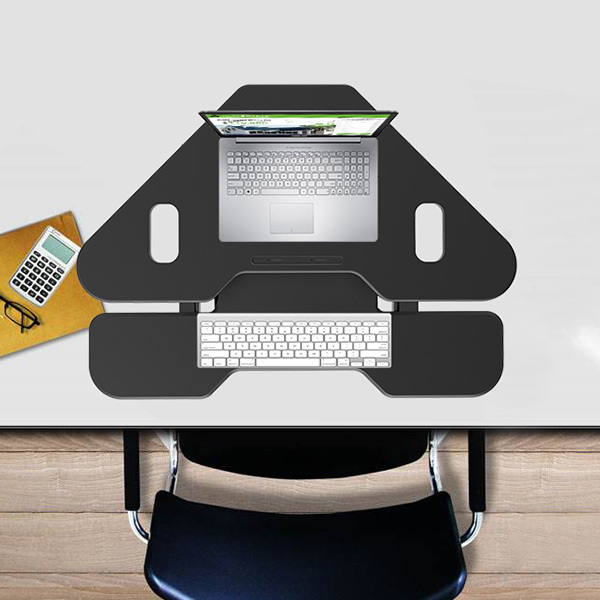 We offer a variety of models of the sit/stand desk in Australia. One of our most popular options is the FLEXI-DESK LD07T. This model fits perfectly regardless of whether your computer is flush against a wall or angled in a corner. It provides a larger area for your keyboard and accessories, while still allowing for an easy one-touch change when you want to adjust the height.