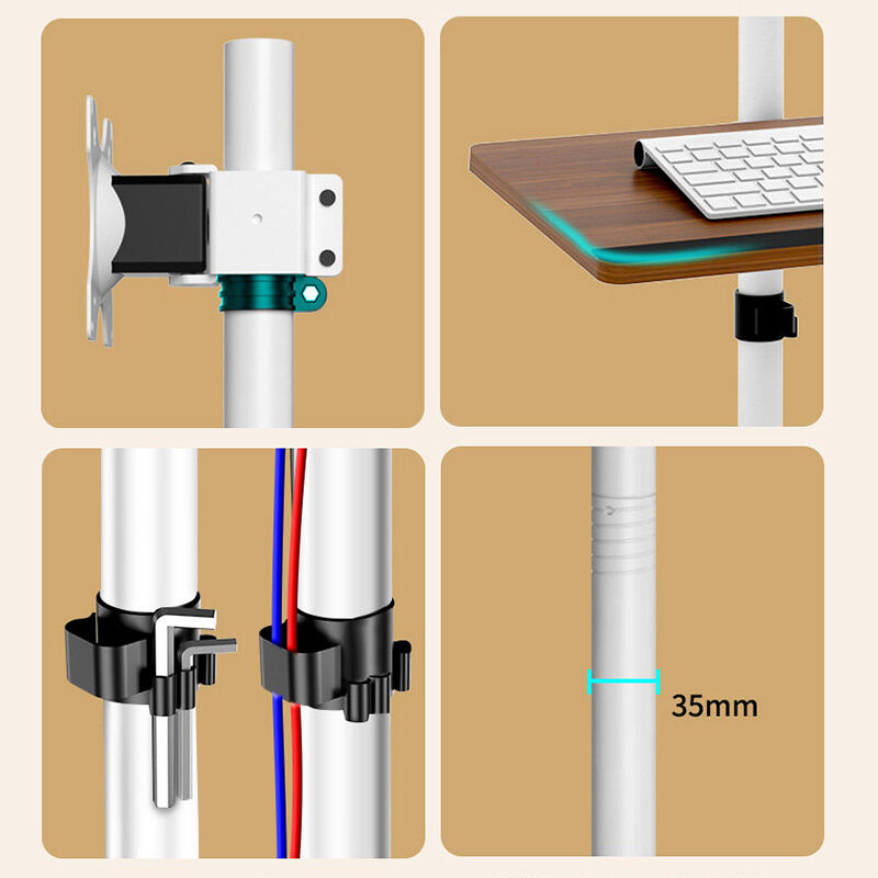 Base:450x620mm Height adjustment to the Plate:1000 - 1600mm Column:35mm dia 1400m long Swivel angle:360° Tilting: 45° Rotation 360° VESA:75*75 - 100*100mm Gas arm screen load up to 9kg Load capacity of base:20kg Compatible Size:10 - 32inches